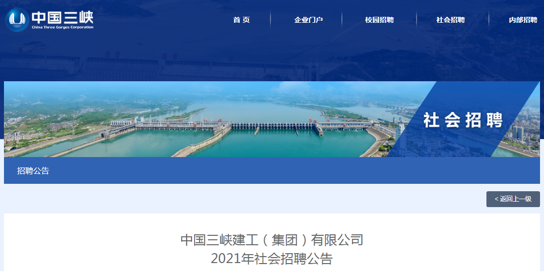 (報名路徑:三峽集團官網->人才招聘->社會招聘->中國三峽建工(集團)有限公司2021年社會招聘公告)。