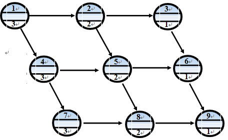 某鋼筋混凝土基礎工程,包括支模板、綁扎鋼筋、澆筑混凝土三道工序,每道工序安排一個專業施工隊進行,分三段施工,各工序在一個施工段上的作業時間分別3天,2天、1天、關于其施工網絡計劃的說法,正確的有( BDE )(2015真題)