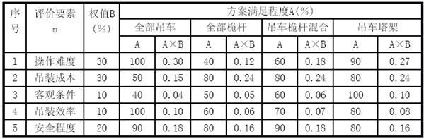1.根據技術經濟分析表,運用綜合評價法選定最優的吊裝方案。