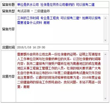 南通人事考試網回復:需要額外由勞務公司出具一份社保繳納證明,證明上寫清楚本人工作單位及其與社保繳納單位的關系,以及社保繳納時間等內容,我市二建報考只接受戶籍所在地為南通地區的或在南通地區從事工程施工管理工作的人員,社保的相關要求請廣大考生自行參考本站公布的2017年度二級建造師考試通知文件及報名注意事項,以最終的現場資格審核結果為準,2018年度全省二級建造師的報名工作即將啟動,類似問題,本站不再逐一回復,謝謝。