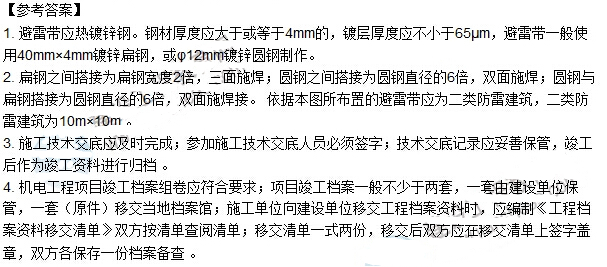 2.本工程避雷帶應(yīng)如何進(jìn)行電焊連接?施工后的倉庫建筑為幾類防雷建筑?