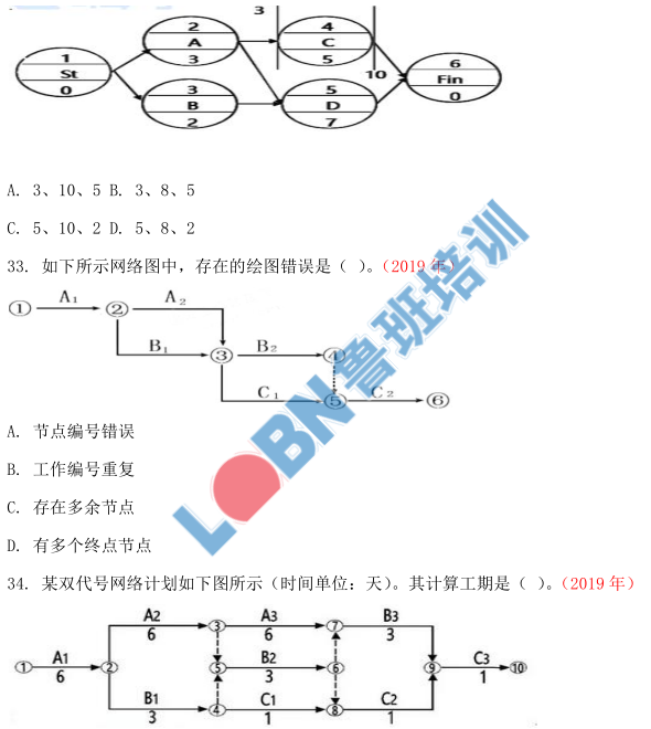節點的通路稱為線路,選項 A 錯誤。在一個網絡圖中可能有很多條線路,線路中各項工作持