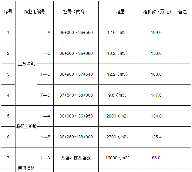 事件一:施工單位根據(jù)現(xiàn)場(chǎng)具體情況,將土方填筑、混凝土護(hù)坡、堤頂?shù)缆贰⒉萜ぷo(hù)坡工程施工分別劃分為4個(gè)、2個(gè)、2個(gè)、2個(gè)作業(yè)組,具體情況如表5-2所示。