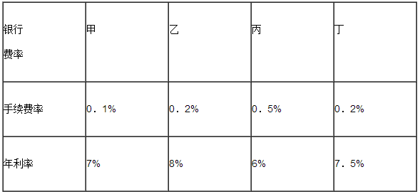 56.某企業擬從銀行取得一筆貸款2000萬元,期限3年,每年年末付息,到期一次還本。有四家銀行提出的貸款條件見下表: