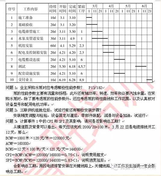 事件2:在熱水管道施工中,按施工圖設計位置施工,碰到其他管線,使熱水管道施工受阻,項目部向設計單位提出設計變更,要求改變熱水管道的走向,結果使水泵及管道安裝工作拖延到4月29日才完成。