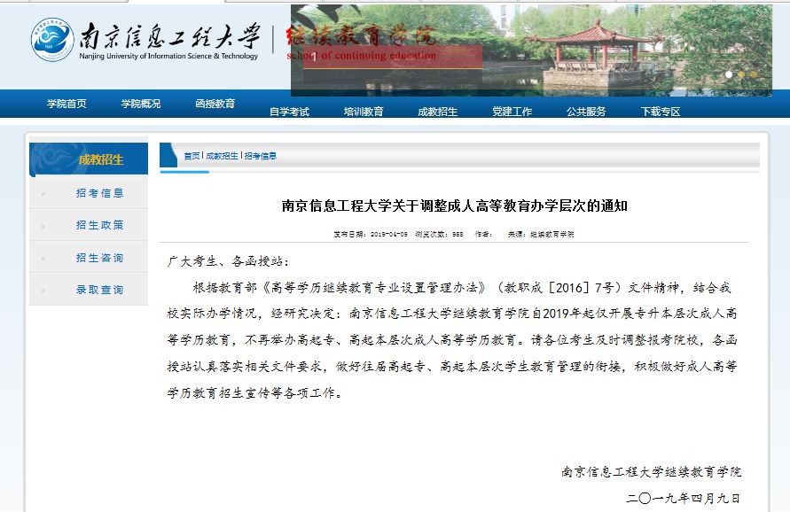 舉例,2020年后北京科技大學、南京信息工程大學等將不會再招收大專段學生,成人高考大專、自考大專都會停招。