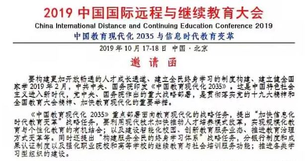 撇開這份《高等學歷繼續教育專業設置管理辦法》通知不算,10月展開的2019中國國際遠程與繼續教育大會,應該算最新焦點了。