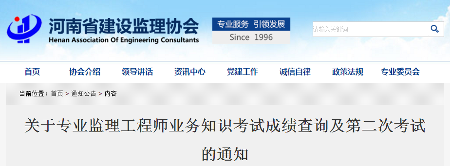 今日:河南省建設監(jiān)理協(xié)會發(fā)布了《關于專業(yè)監(jiān)理工程師業(yè)務知識考試成績查詢及第二次考試的通知》, 《通知》說 11月18日舉行的專業(yè)監(jiān)理工程師業(yè)務知識考試,成績今日公布。請參加考試的學員登陸協(xié)會網(wǎng)站,在“河南省建設監(jiān)理從業(yè)人員教育培訓系統(tǒng)”里查詢成績,合格標準是105分。未達到105分合格標準的考生,可以參加第二次考試,第二次考試成績?nèi)赃_不到合格標準,為考核不合格。考試時間為12月3日下午14:00-17:00。考試方式為:登陸河南省建設監(jiān)理協(xié)會網(wǎng)站(www.haec.org.cn),在“河南省建設監(jiān)理從業(yè)人員教育培訓系統(tǒng)”里,點擊“在線考試”。