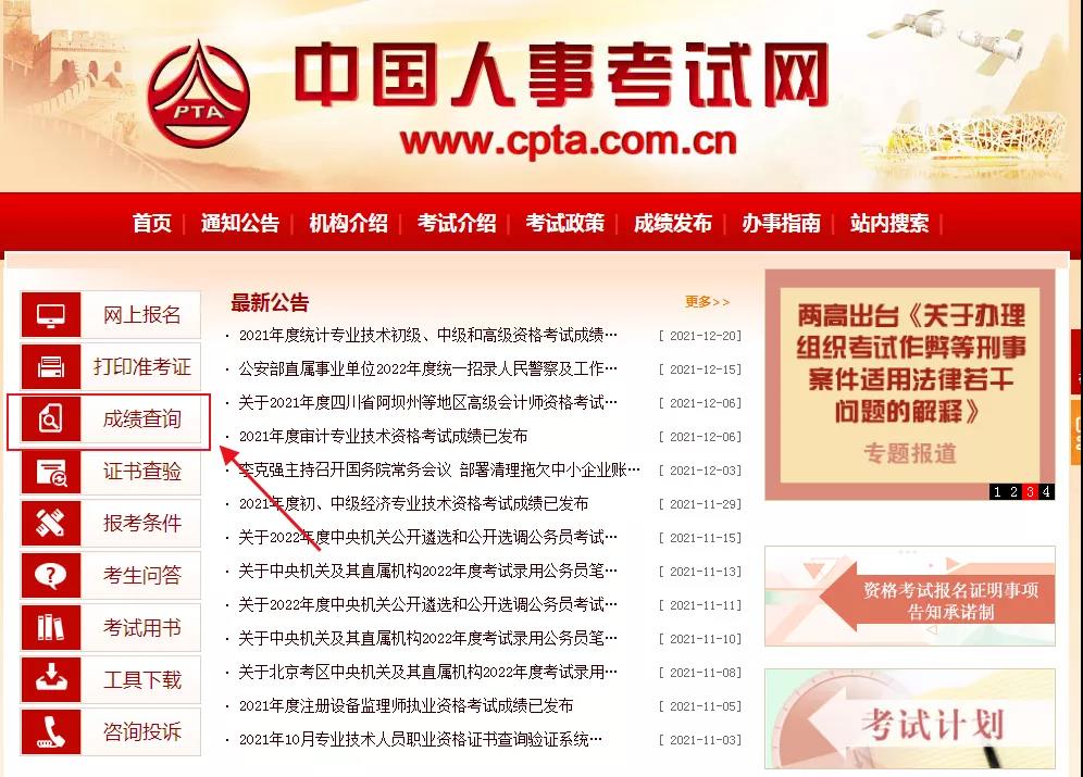 1?? 進入中國人事考試網(wǎng),點擊成績查詢。
