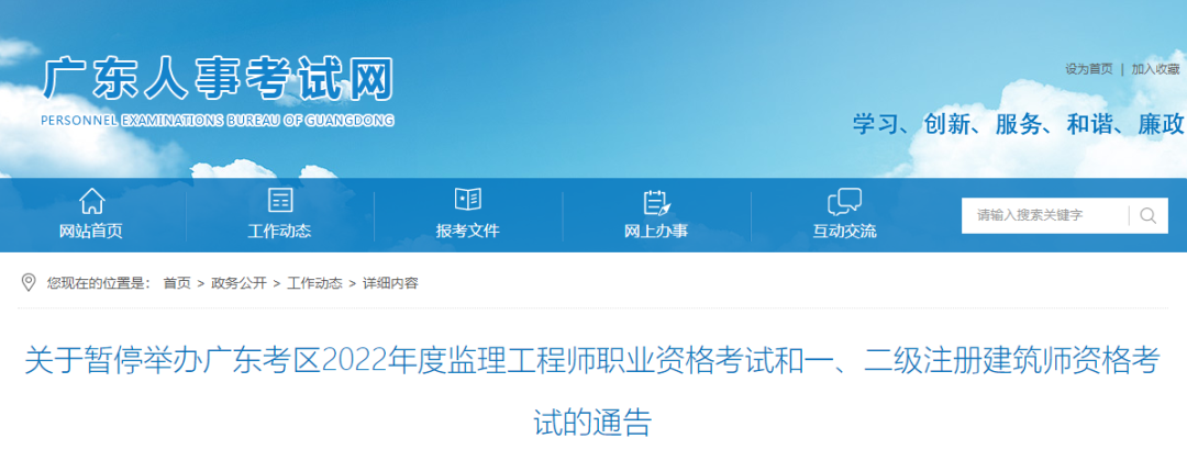 關于暫停舉辦廣東考區(qū)2022年度監(jiān)理工程師職業(yè)資格考試和一、二級注冊建筑師資格考試的通告