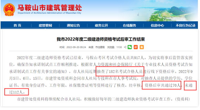 安徽馬鞍山:2022年二級建造師審核合格率38%?