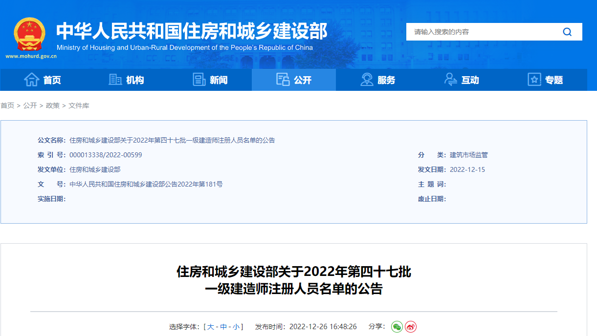 作者:一級建造師 來源:住建部 瀏覽: 添加日期:2023-01-13