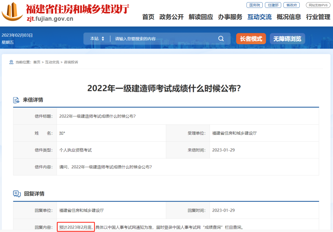 留言咨詢:請問,2022年一級建造師考試成績什么時候會公布?