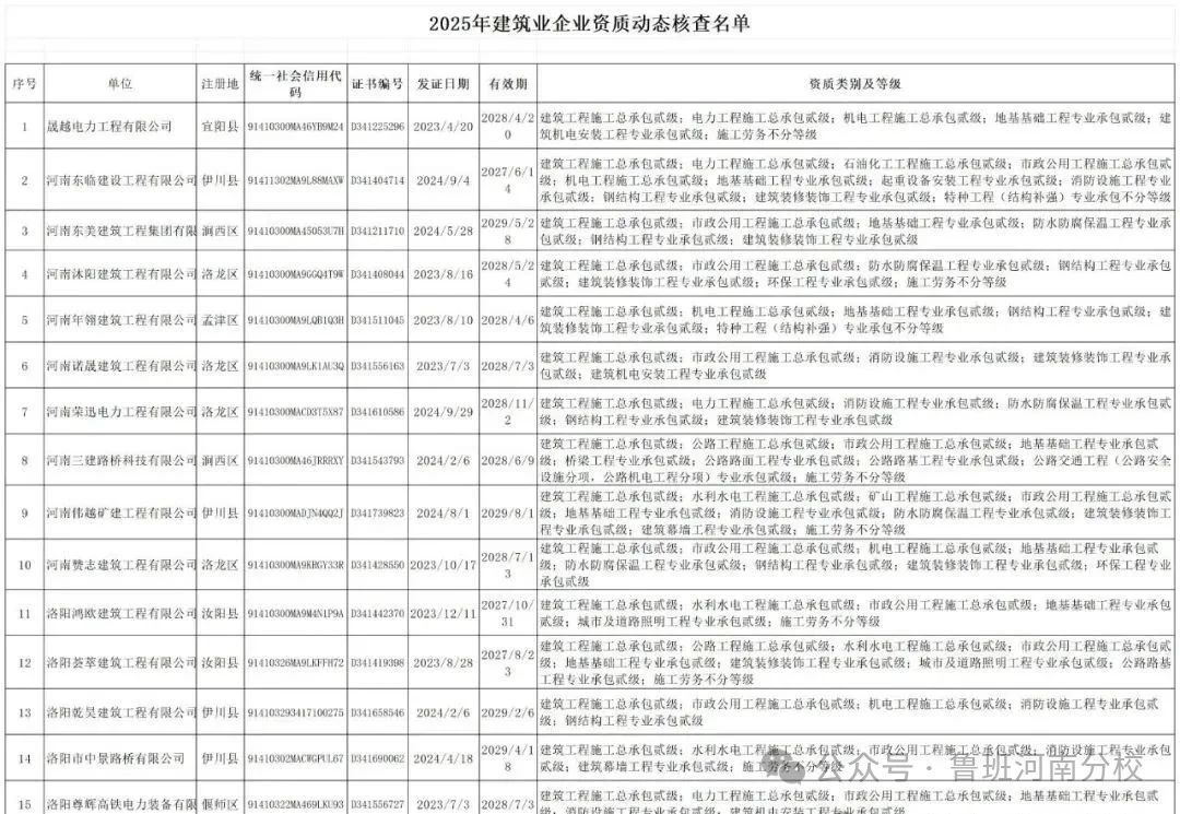 按照《河南省住房和城鄉建設廳關于對部分建筑業企業開展資質動態核查的通知》(豫建市〔2025〕135號)要求,對篩查發現的2023年和2024年連續兩年無產值且多項資質被標注異常的建筑業企業開展資質動態核查,現將有關要求通知如下: