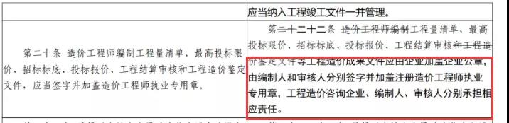 ● 工程造價成果文件必須加蓋企業公章,編制人和審核人分別簽字加蓋注冊造價工程師執業印章,意味著施工單位也必須配置注冊造價工程師,預計最少是一造一個,二造一個!