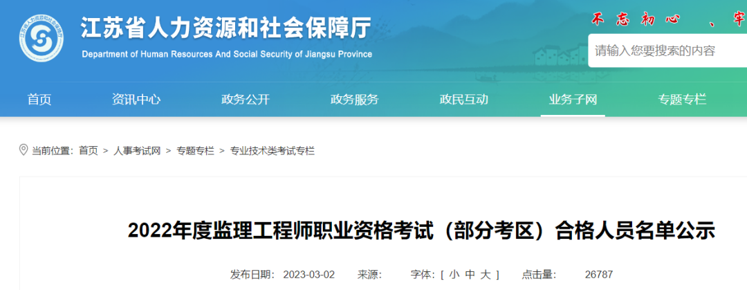 根據(jù)江蘇人社廳發(fā)布的合格人員名單公示,2022年江蘇省監(jiān)理工程師資格考試合格人數(shù)為 4480 人。