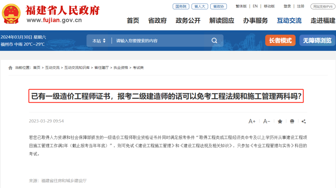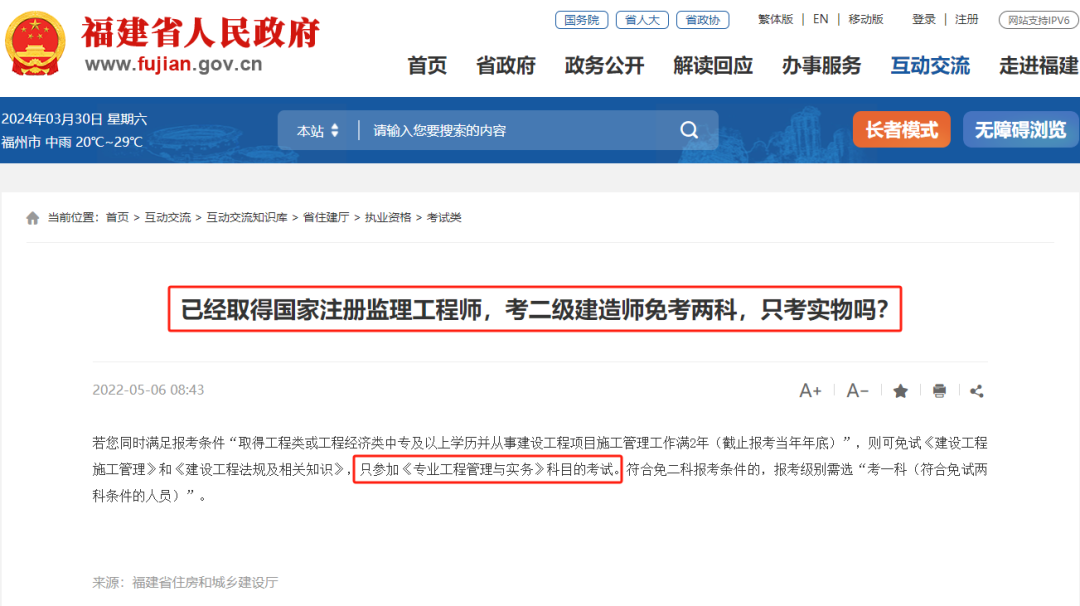 已持有一級造價工程師、一級建造師、監理工程師等證書,準備在福建省報考二建的考生有福了!