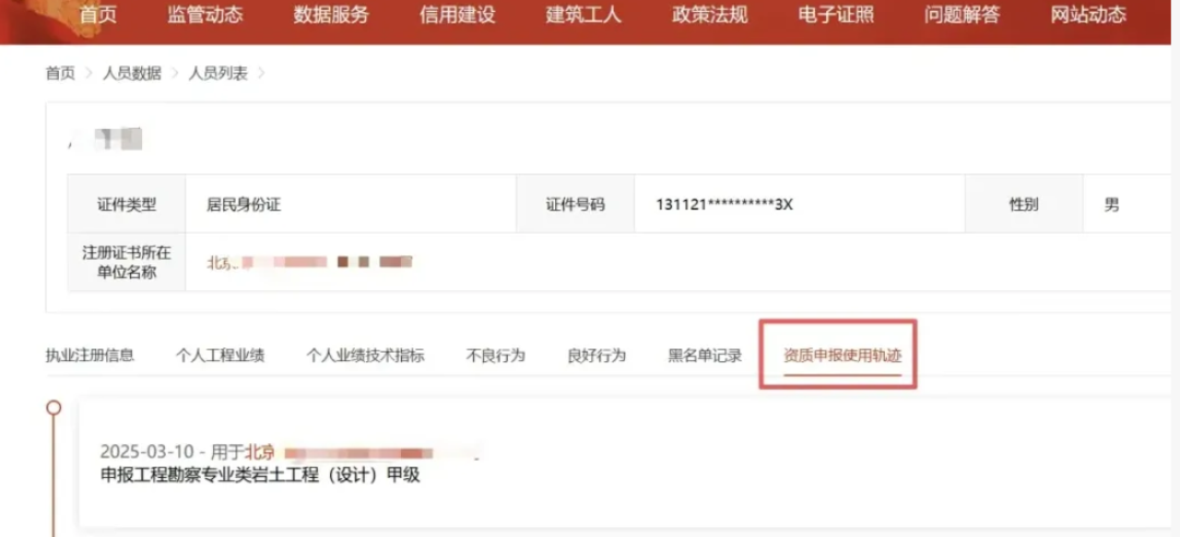 以往,建筑行業證書的使用情況如同蒙著一層神秘面紗。同一本證書在不同時間、不同地區被重復使用的現象時有發生,企業間的信息壁壘造就了證書使用的灰色地帶。而今,新功能的上線讓每本證書的“職業生涯”都將留下完整軌跡——何時被哪家企業用于申報何種資質,所有信息一目了然。