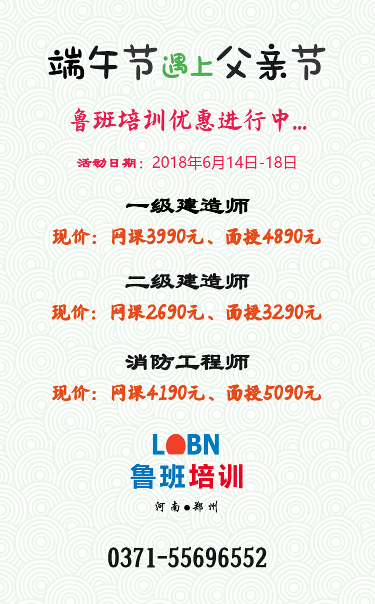 您的當(dāng)前位置:魯班培訓(xùn)-一建培訓(xùn),二建培訓(xùn),監(jiān)理,注冊安全工程師等 > 開課通知 > 優(yōu)惠活動(dòng) >