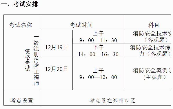 2015年河南一級消防工程師考試報名安排
