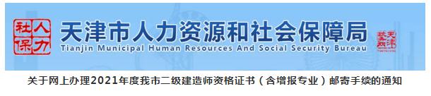 為滿足廣大考生需要,方便考生盡快取得證書,減少考生往返路程和排隊等候,天津市人才考評中心與中國郵政速遞物流股份有限公司天津市分公司合作,開通2021年度我市二級建造師資格證書(含增報專業)郵政EMS寄遞業務。具體事項通知如下: