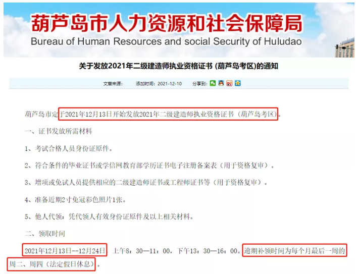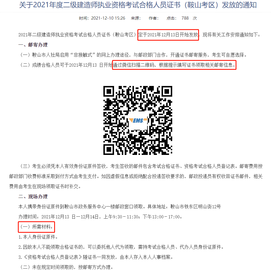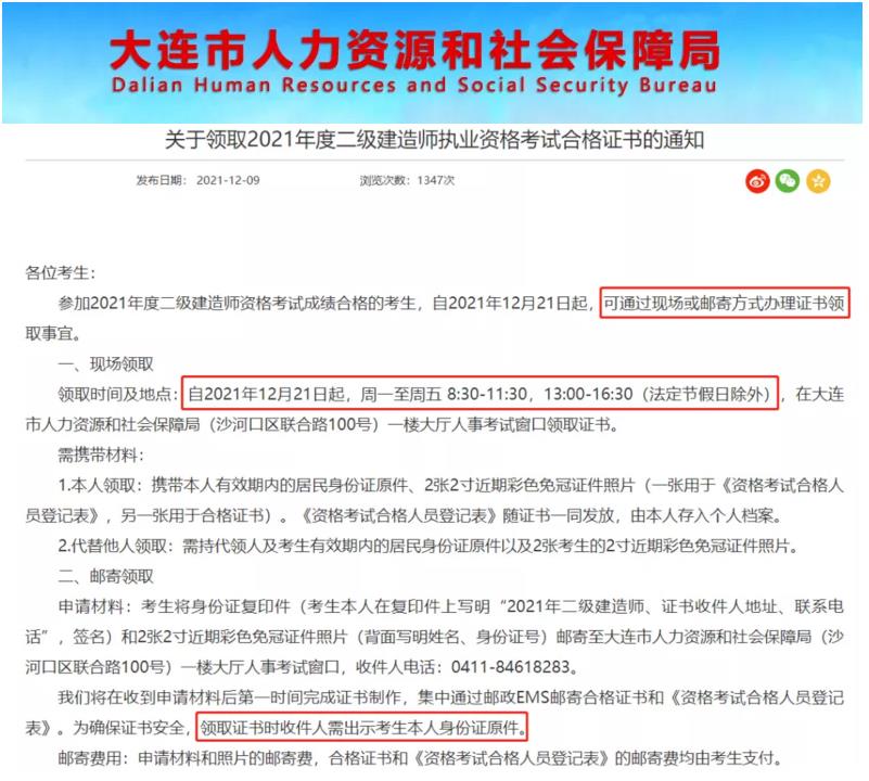 自2021年12月21日起,可通過現(xiàn)場或郵寄方式辦理證書領(lǐng)取事宜。