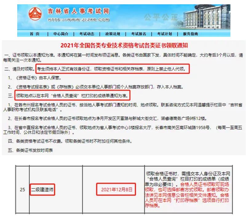 2021年吉林二建證書12月8日開始領(lǐng)取,原則上禁止他人代領(lǐng)。