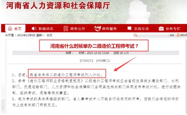 河南人社廳回復:河南省什么時候舉辦二級造價