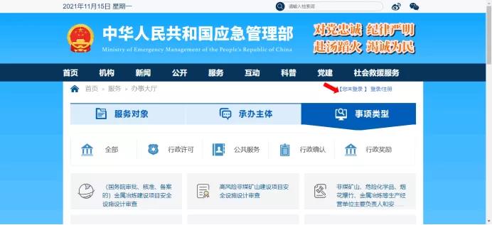 (一)通過應急管理部官網政務服務平臺訪問