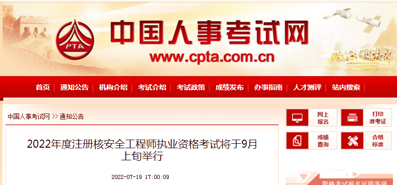 2022年核安全工程師考試9月上旬開始