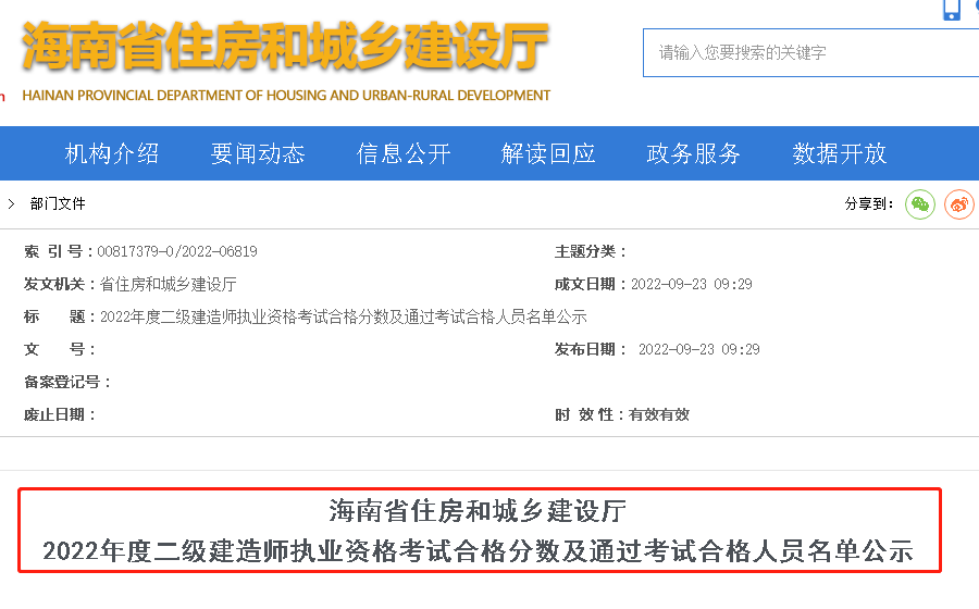 2022年度二級建造師執業資格考試合格分數線及通過考試合格人員名單公示如下: