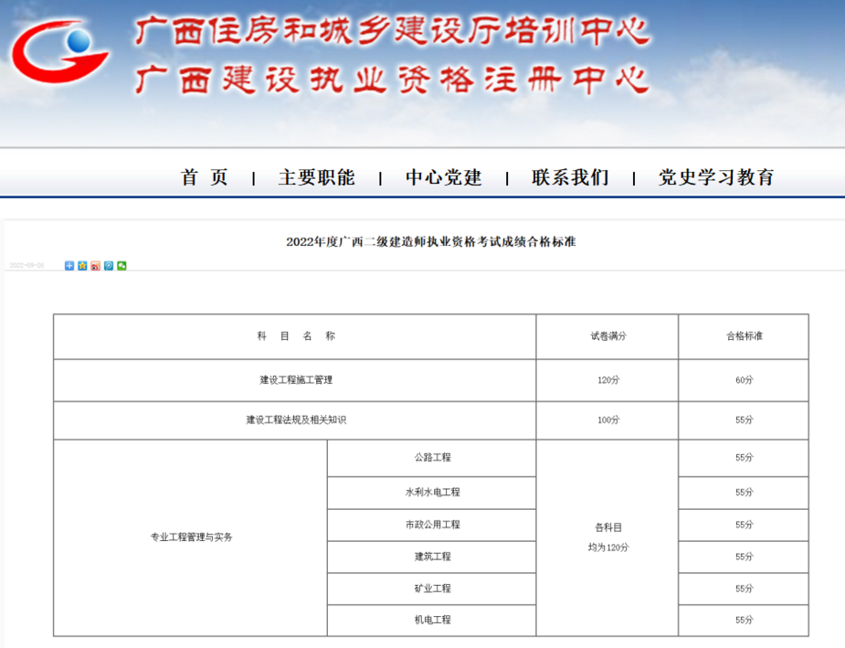 2022年廣西二建考試合格標準為:管理60分,法規55分,六大實務55分。