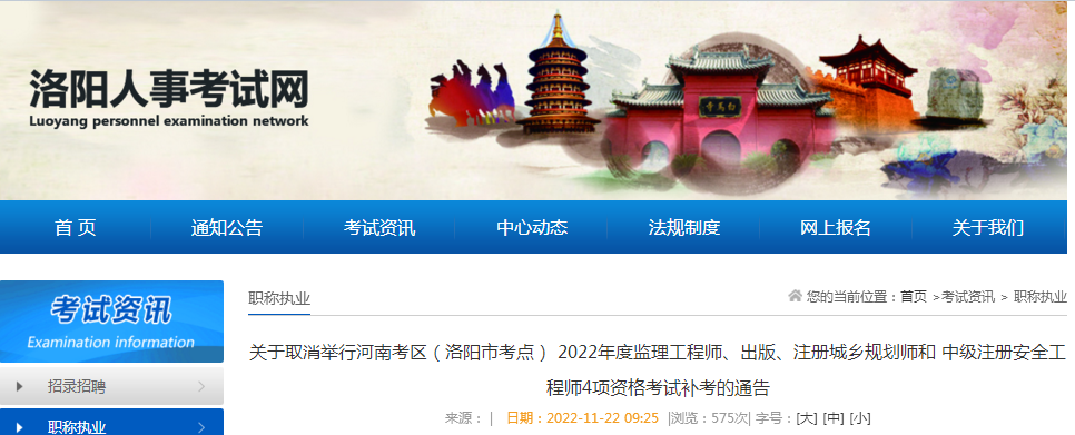 洛陽:取消2022年注安、監理等4項考試補考!
