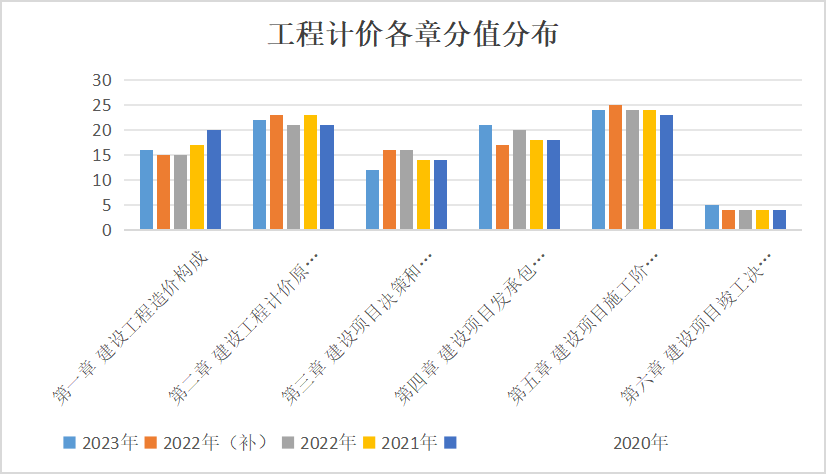 從歷年考試章節(jié)分值分布可以看出:工程計價學(xué)習(xí)的重點是第一、二、四、五章,其中,第二章和第五章尤其重要。另外,第一章第三節(jié)、第三章第一、二節(jié)也要重點注意,近幾年來都有重點考察到。計算題型較多,15-18個左右,難度中等,尤其是要掌握書上有例題的計算題型;各章節(jié)內(nèi)容有一定的關(guān)聯(lián)性,學(xué)習(xí)時思路一定要清晰。