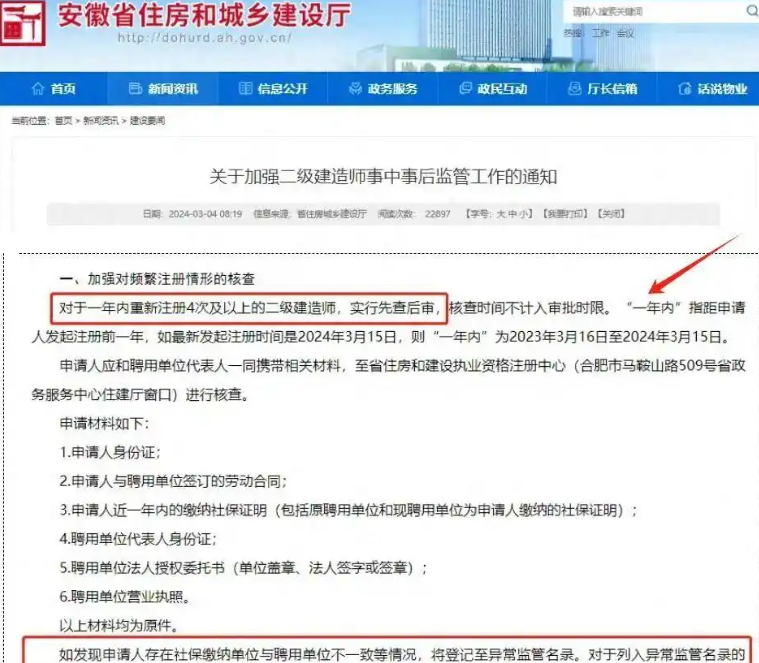 頻繁變更注冊的建造師會被納入“重點監(jiān)管名單”,例如,安徽省規(guī)定一年內(nèi)重新注冊超過4次的二建人員,需接受人工審查,審查期間不得參與任何項目投標(biāo)。