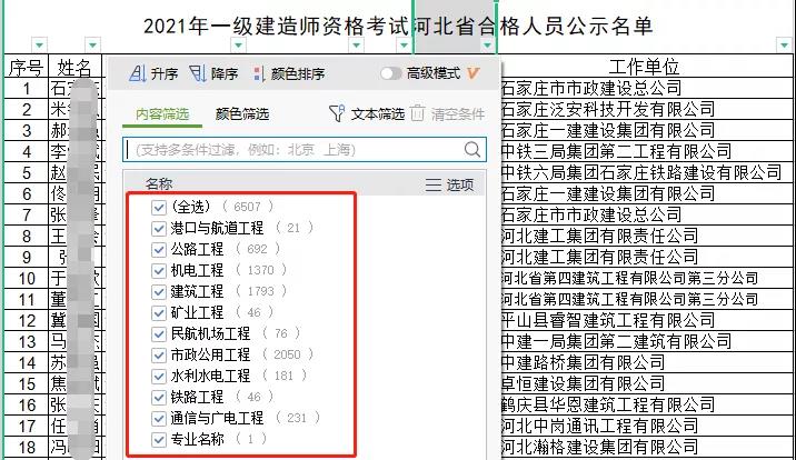 2021年一級建造師資格考試河北省合格人員公示