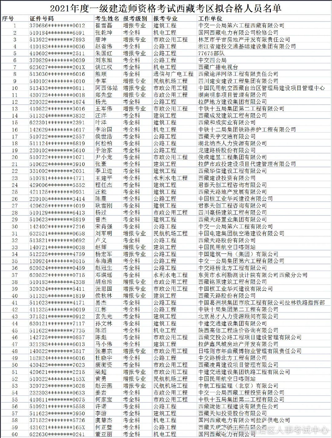 附件:西藏考區擬合格人員名單