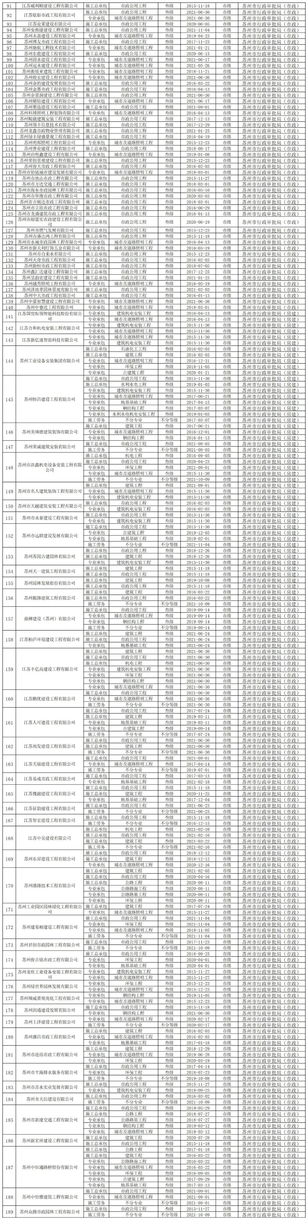 蘇州:對189家施工企業資質進行復核清理!