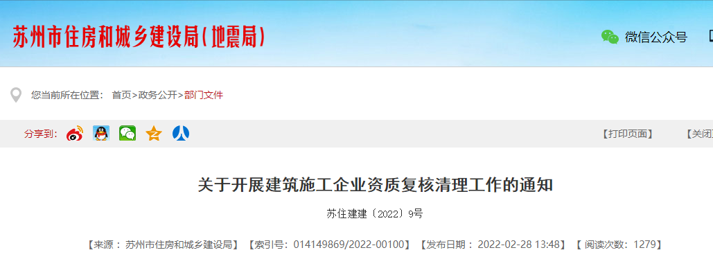 前幾日,蘇州市住建局發布《關于做好建筑企業資質(施工、監理、勘察設計)復核清理工作的通知》。