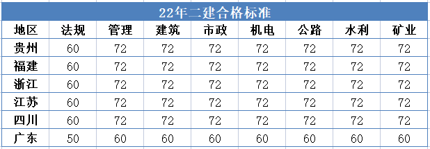 2021-2022年二級建造師合格標準變動(已公布地區)