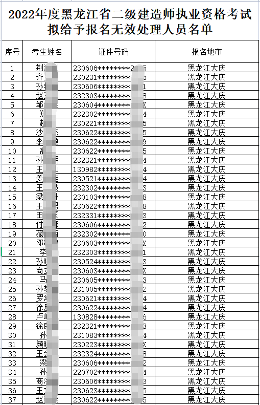 黑龍江2022年二級建造師510名考生報名無效!