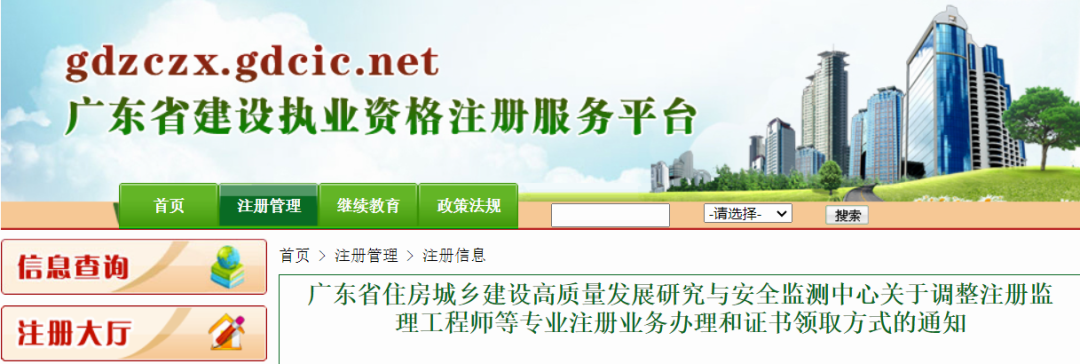 申請人在辦理注冊監理工程師、一級注冊造價工程師等5個專業的變更注冊、注銷注冊業務時,需登錄住房城鄉建設部對應專業的注冊系統和“廣東省建設執業資格注冊管理信息系統”提交申請。