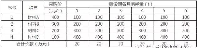某項目的建設(shè)期6個月,合同約定進度款40萬元/月(不含稅價格)。施工中,甲施工單位共采購了4種建筑材料,材料價格(不含稅價格)及各月消耗量見下表。