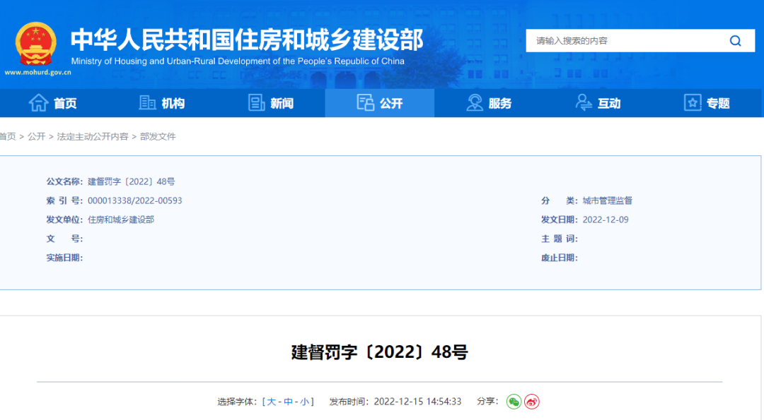 剛剛,住建部再下發《建督罰字〔2022〕47號》和《建督罰字〔2022〕48號》,對事故的施工總承包單位和實際施工總承包單位追責: